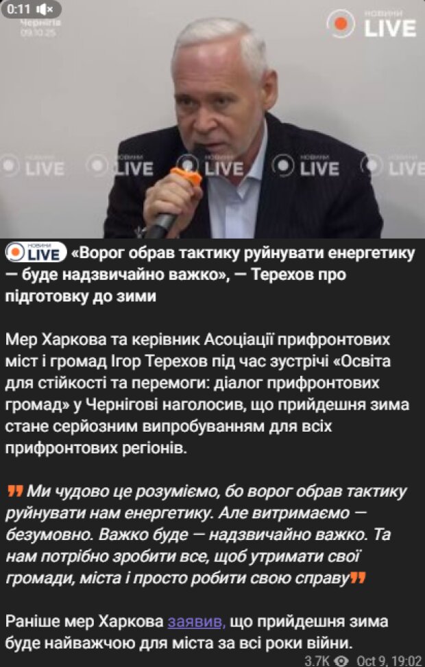 Мэр Харькова Терехов сообщает, что Россия сосредоточилась на систематическом уничтожении украинских энергетических объектов, что, как ожидается, серьёзно осложнит подготовку к предстоящей зиме.