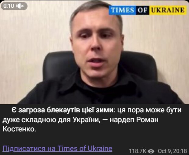 Народный депутат Роман Костенко предупредил, что есть вероятность блэкаутов с отключениями света и отопления.