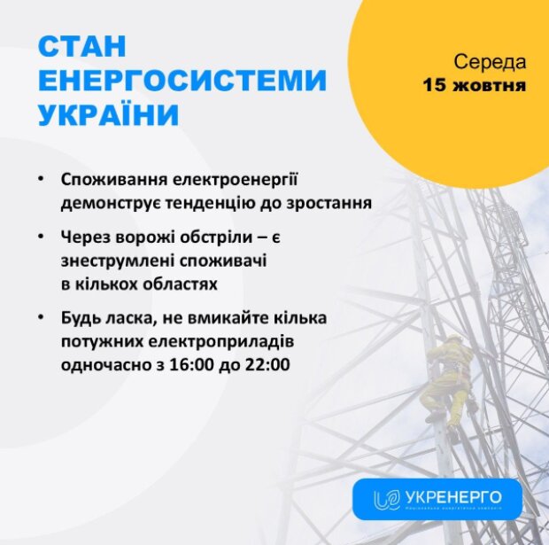 В связи со сложной ситуацией в энергосистеме после повторных ударов, ранее днем были введены аварийные отключения электроэнергии в Сумской, Харьковской, Полтавской, Днепропетровской, Запорожской, а также частично в Кировоградской и Черкасской областях. Сейчас эти ограничения сняты, хотя система по-прежнему испытывает значительную нагрузку.