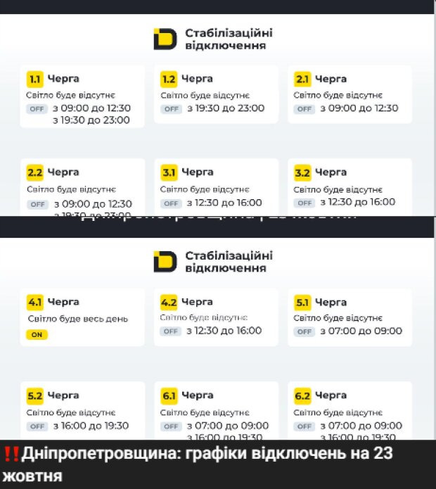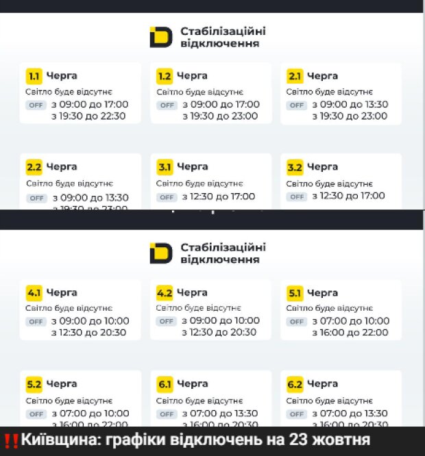 Окрім цього, у ДТЕК надали докладні графіки відключень для деяких регіонів.